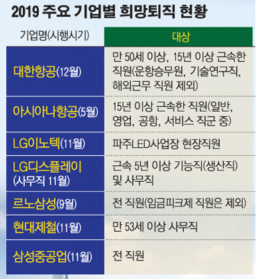 19년도에 시행된 주요기업 희망퇴직 현황입니다