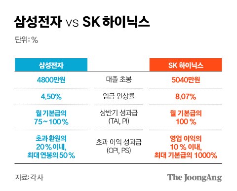 계약연봉도 SK하이닉스가 삼성전자보다 약간 높기 때문에