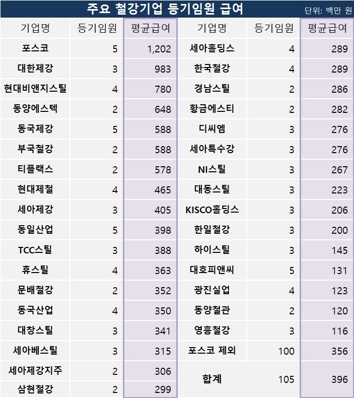 포스코만 유일하게 등기임원 연봉이 10억원을 넘겼죠